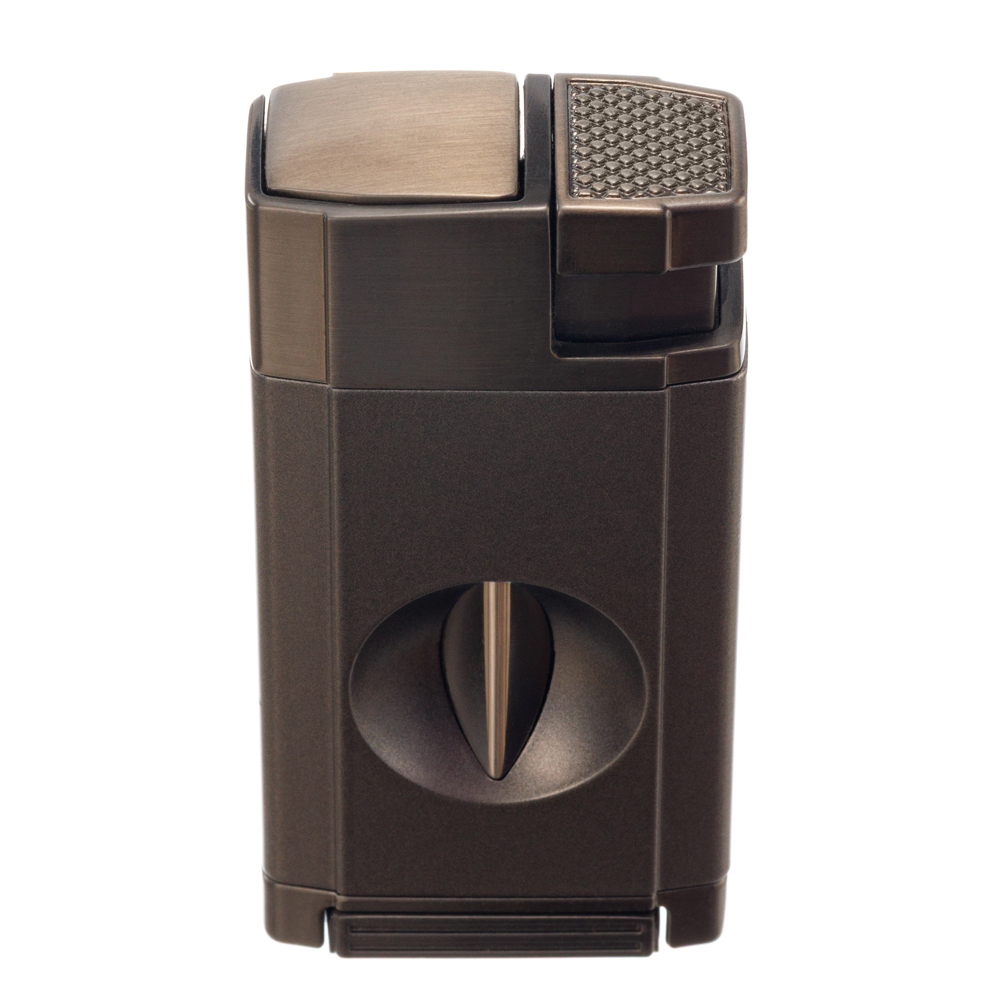 Мощная турбо зажигалка S.Quire с двойным пламенем. Предусмотрена возможность дозаправки и регулировки пламени. Встроена гильотина для сигар, также на корпусе есть удобное окошко для контроля уровня газа.