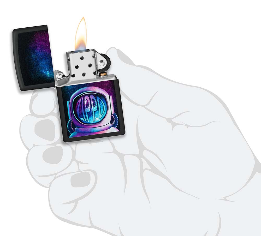 Зажигалка ZIPPO Astronaut с покрытием Black Matte, латунь/сталь, чёрная, матовая, 38x13x57 мм