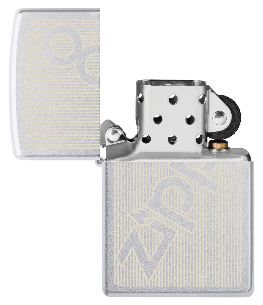 Зажигалка ZIPPO Logo с покрытием Satin Chrome, латунь/сталь, серебристая, матовая, 38x13x57 мм