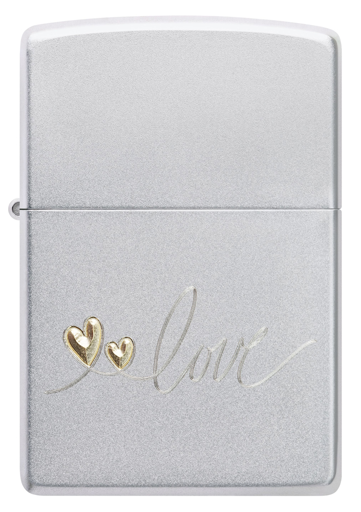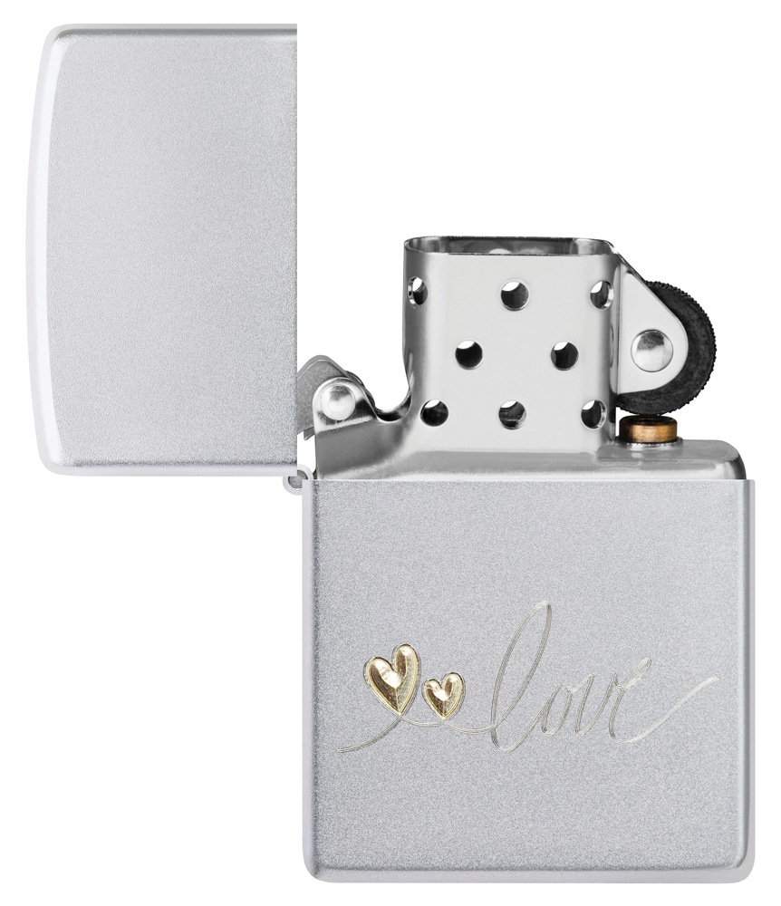 Зажигалка ZIPPO Love Design с покрытием Satin Chrome, латунь/сталь, серебристая, 38x13x57 мм