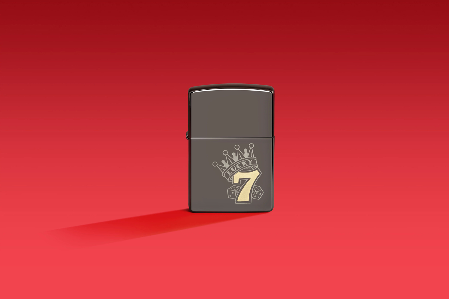 Воспользуйтесь этой зажигалкой с покрытием Black Ice®, чтобы усилить удачу, куда бы вы ни пошли. Благодаря двухцветной лазерной гравировке мы изобразили счастливую цифру 7 в короне и с парой игральных костей в роскошных латунных и хромированных тонах.