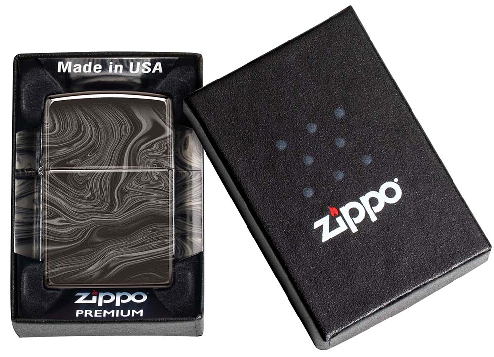 Зажигалка ZIPPO Marble Pattern с покрытием High Polish Black, латунь/сталь, чёрная, 38x13x57 мм