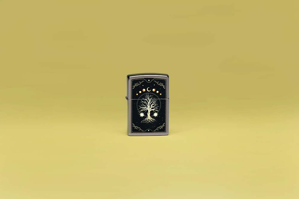 По-настоящему мистический дизайн: фазы луны, изящно запечатленные над мерцающим Древом Жизни, а под ним переливается таинственная ночь, созданная благодаря отделке Black Ice®.