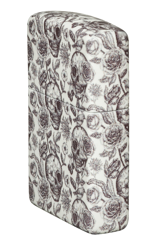 Черепа здесь повсюду, вперемешку с флористикой. Для создания притягательного в своей ужасающей красоте дизайна использовался техпроцесс Zippo 540 Color, который позволяет покрывать абсолютно всю поверхность зажигалки детально прорисованными художественными изображениями.