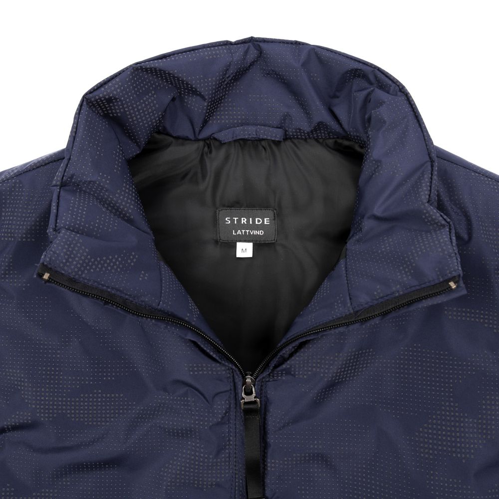 Жилет с воротником-стойкой и светоотражающим рисунком.