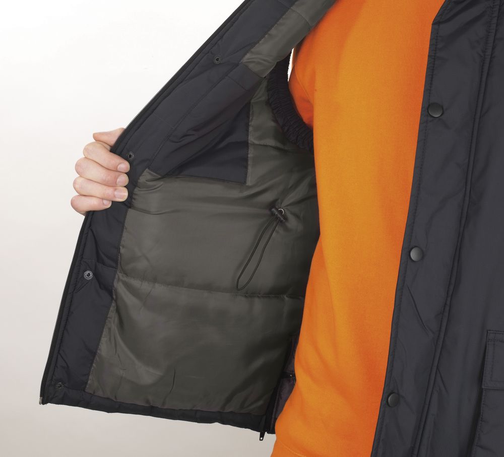 - Два кармана спереди для рук, два кармана на груди для мобильного телефона, ручек и прочих мелочей, а также внутренний карман