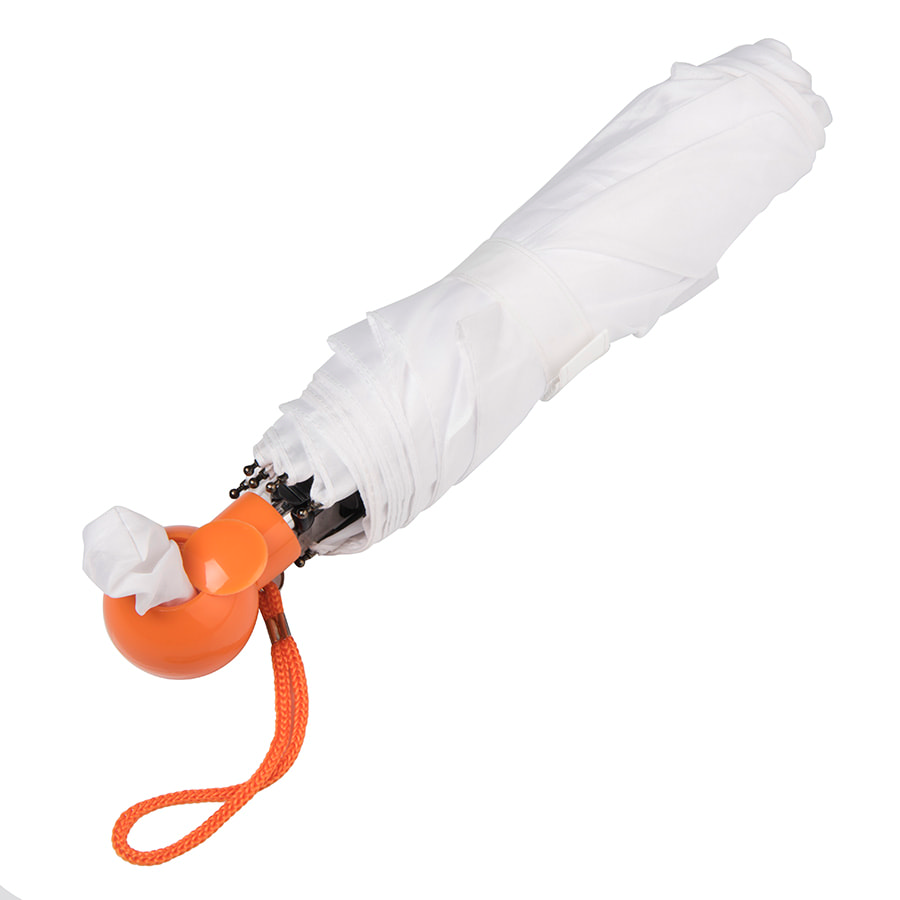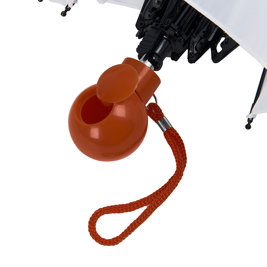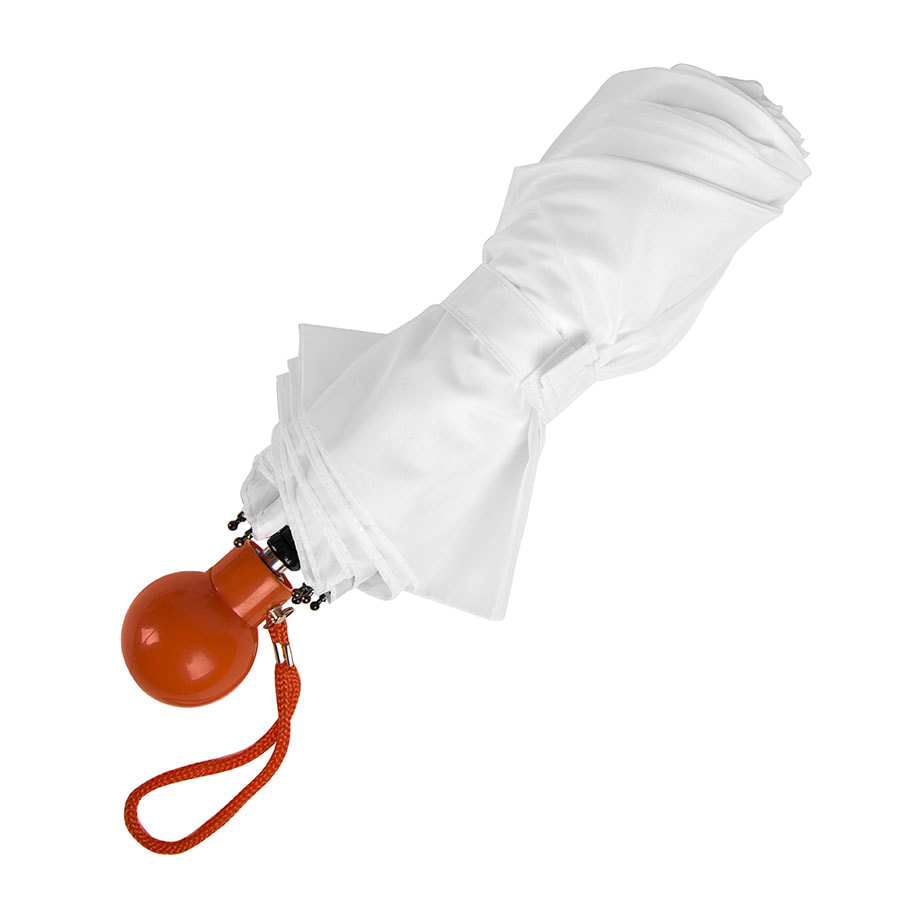 Зонт складной в 3 сложения механический.Диаметр купола: 95 см., длина в сложенном виде 27 см.Состав купола: 100% полиэстер 190T.Состав стержня: металл.Состав спиц: стекловолокно.Ручка: пластик.Зонт оснащен особой ручкой, в которую можно убрать чехол от зонта, чтобы он не потерялся.Широкая палитра цветов ручек, охватывает все основные корпоративные цвета. 10 цветов ручек соответствуют по Pantone зарядным устройствам Seashell, ручкам Forte и цветным донышкам кружек Fun. Белый купол как белый лист для ваших фантазий!