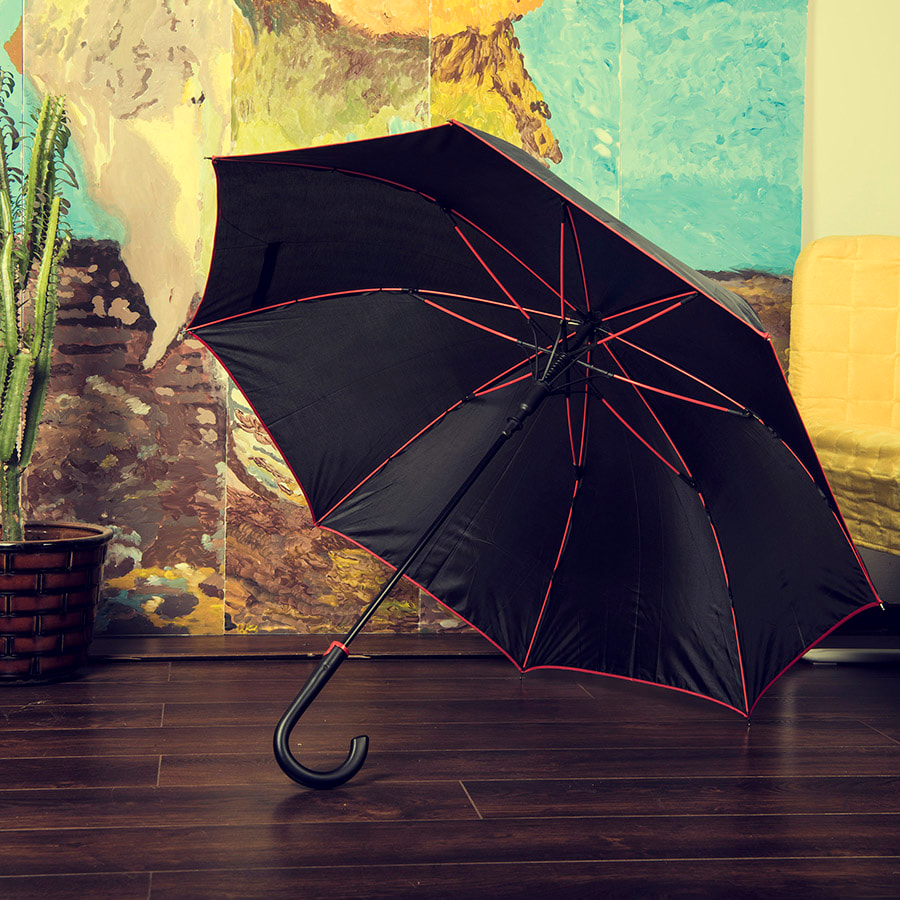 Зонт-трость BACK TO BLACK, пластиковая ручка, полуавтомат