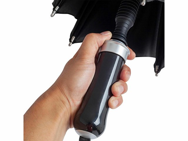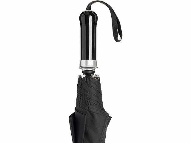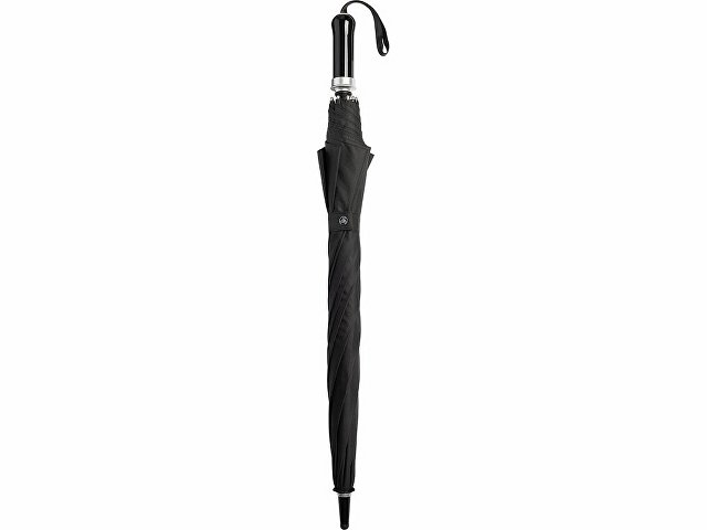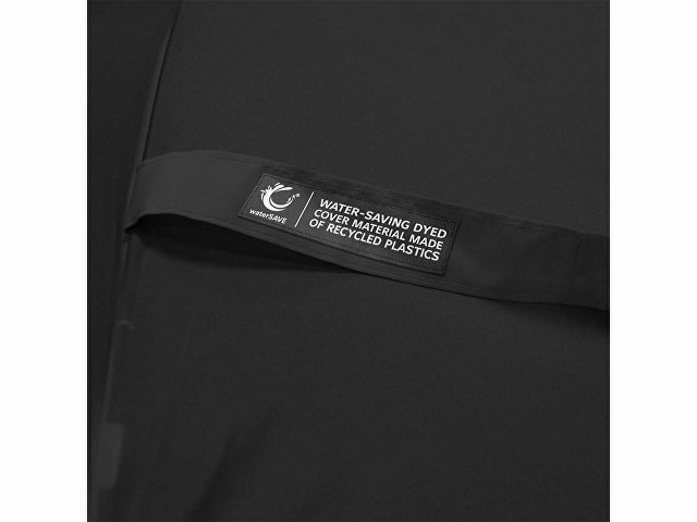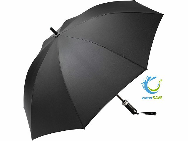 Удобный автоматически открывающийся зонт-трость с уникальной функцией быстрого открытия - нужно потянуть вниз металлическое кольцо на ручке. Купол зонта изготовлен из эпонжа из переработанного пластика, с использованием технологии WaterSAVE, когда окрашивание материала происходит в процессе производства, за счет чего снижает потребление электроэнергии и воды. Высококачественная система защиты от ветра в штормовых условиях обеспечивается гибкими спицами из стекловолокна. Ручка глянцево-черного цвета с хромированными вставками и петлей для переноски. В комплекте чехол, застегивающийся на кнопку. Трафаретная печать (1 цвет (цветные изделия)) на данный товар осуществляется бесплатно. Оплачивается только настройка оборудования в размере 13700 рублей на весь тираж.