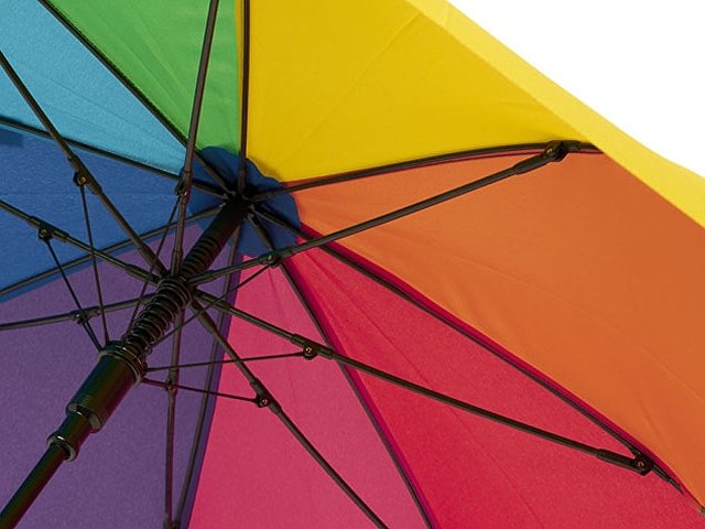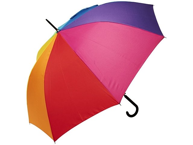 23-дюймовый ветрозащитный полуавтоматический зонт Sarah. Зонт с куполом из эпонж полиэстера, раскрашенный в цвета радуги. Прочный металлический стержень, высококачественная цельная рама из стекловолокна, обеспечивающая максимальную гибкость в ветреную погоду. Выгнутая ручка с мягким матовым покрытием, никелированные верхняя втулка и кончики спиц. Большая область для декорирования на каждой из панелей купола позволяет предложить различные креативные решения для логотипа. Эпонж полиэстер. Трафаретная печать (1 цвет (цветные изделия)) на данный товар осуществляется бесплатно. Оплачивается только настройка оборудования в размере 13700 рублей на весь тираж.